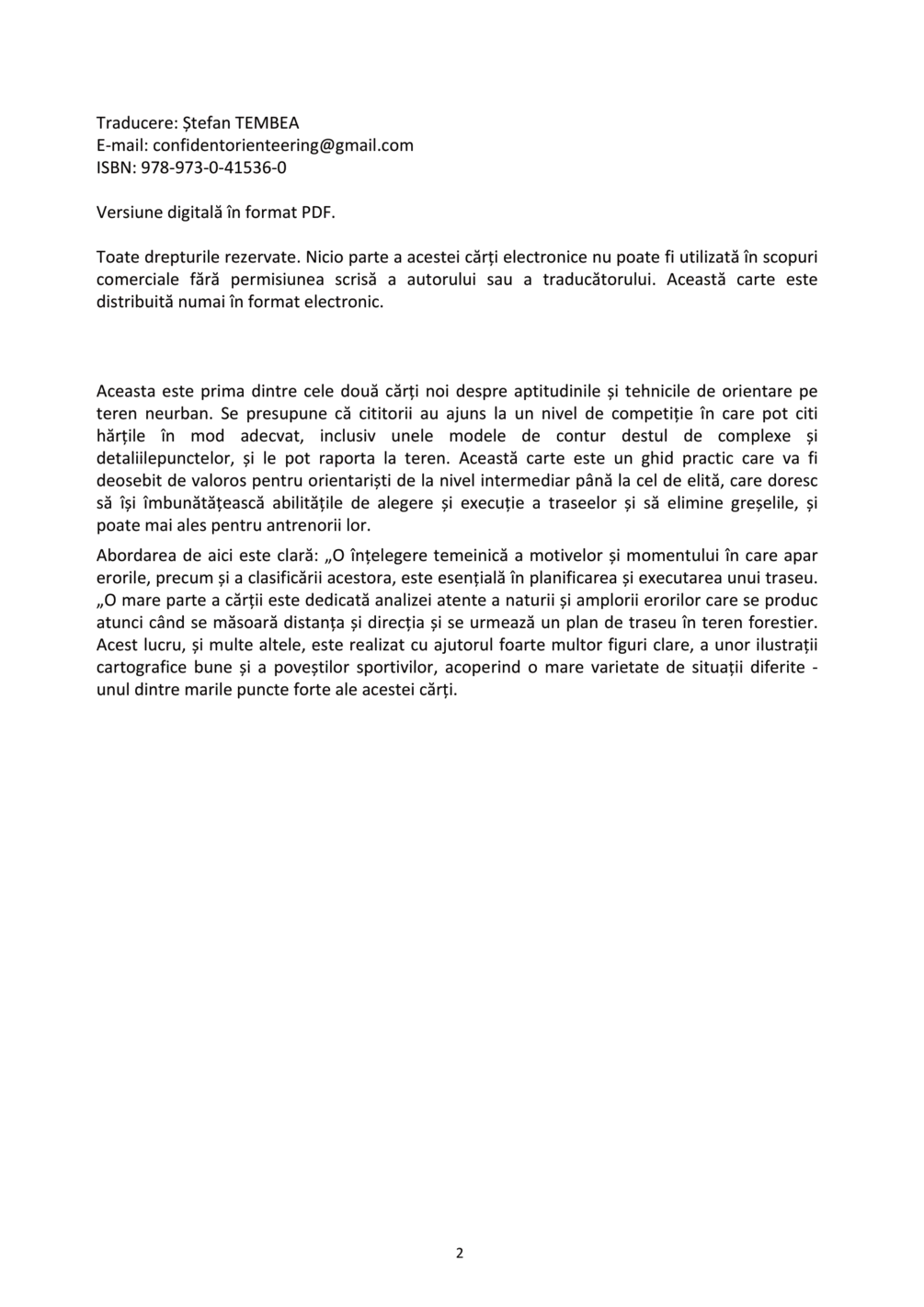 Dacă sunteți hotărât să minimizați semnificativ erorile de execuție a traseului și sunteți gata să depuneți efort, această carte vă va dota cu cunoștințele de care aveți nevoie. După ce o citiți, probabil că veți descoperi noi strategii pentru a minimiza erorile de navigare pe care nu le-ați luat în considerare până acum.